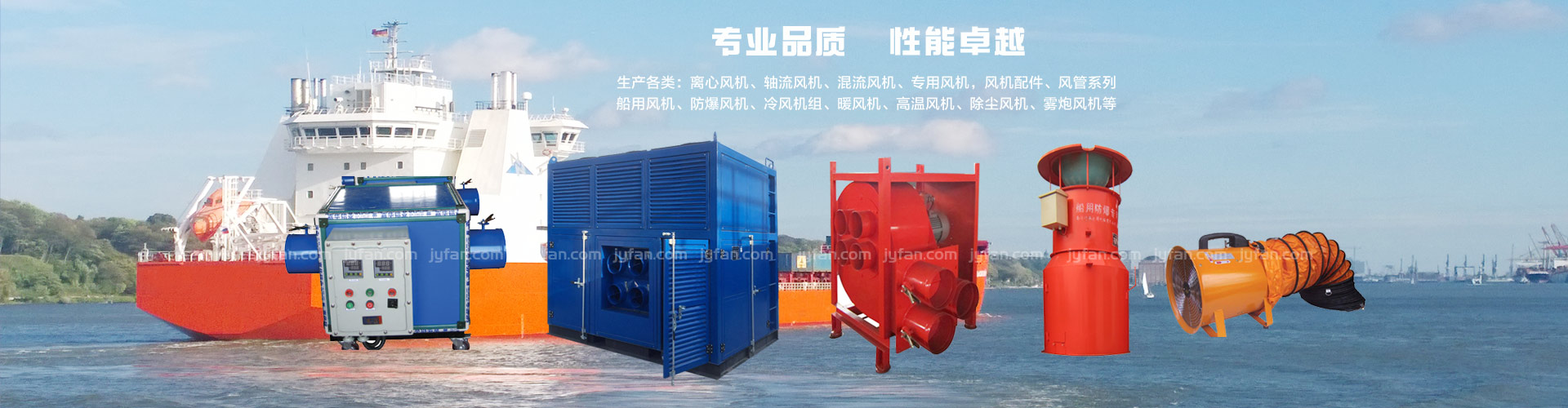 我公司是風機專業設計制造廠家,公司注冊商標“精洋”,主要產品有各類:離心風機,軸流風機,船用風機,船用離心風機,船用軸流風機,不銹鋼風機,耐高溫離心風機,鍋爐風機,防腐風機,除塵風機,船用防爆風機,造船用風機,船用冷風機,船用暖風機等。